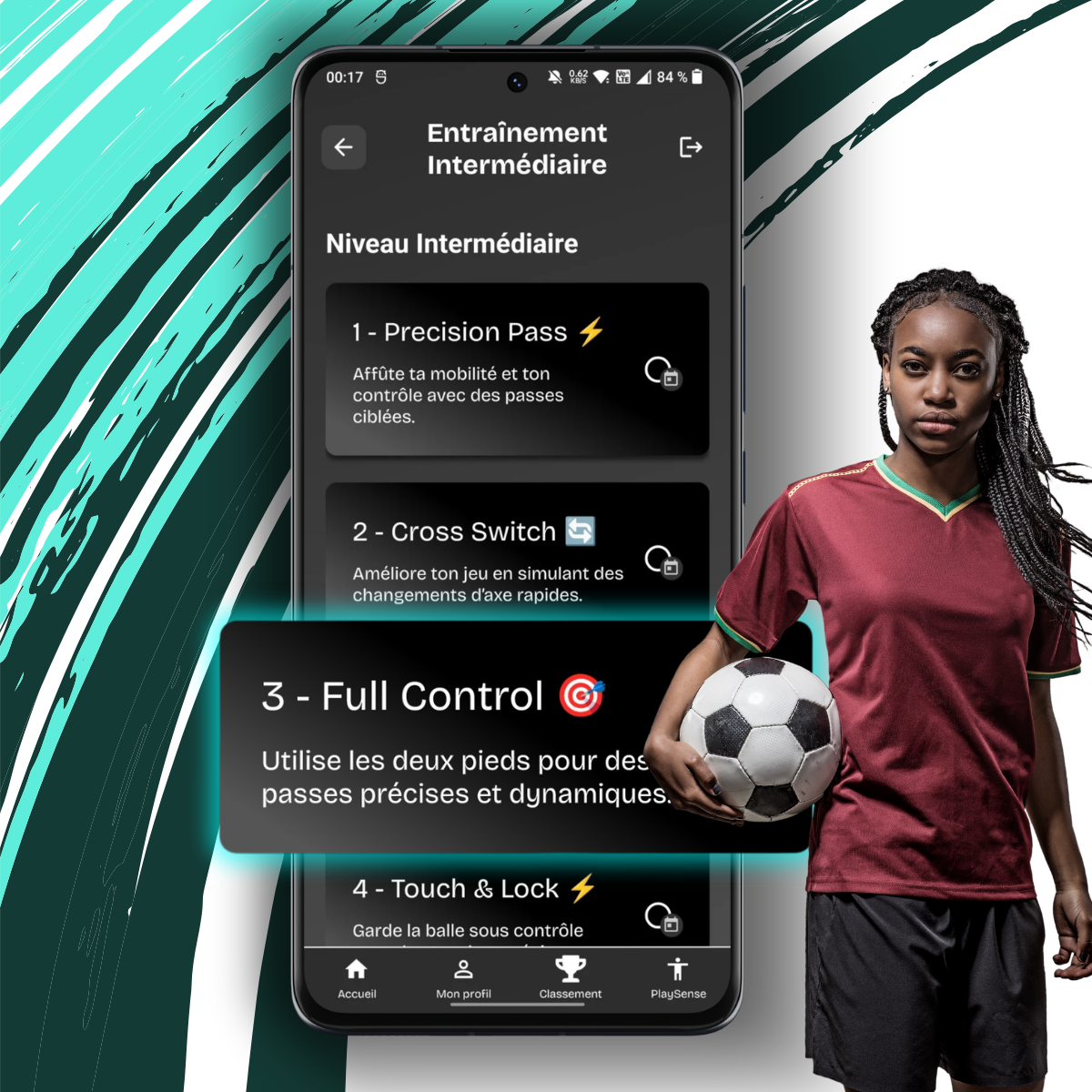 Accède à des exercices interactifs et un programme structuré pour améliorer ta technique pas à pas. Nos entraînements sont pensés pour s’adapter à ton niveau et te permettre de voir des résultats concrets dès les premières sessions. 🚀⚽