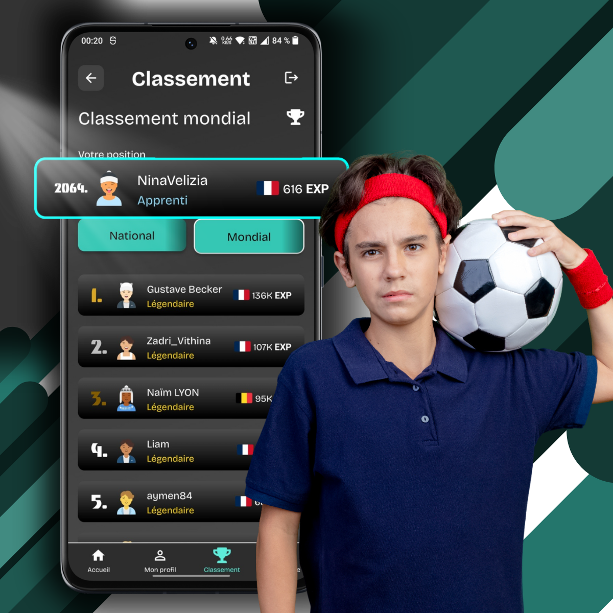 Accumule des points, débloque des niveaux et mesure ton évolution grâce à un classement motivant. Chaque séance d’entraînement te rapproche d’un nouveau palier, rendant ta progression plus fun et plus gratifiante. 💪🔥